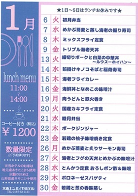 9月のランチから1,200円とさせていただきます